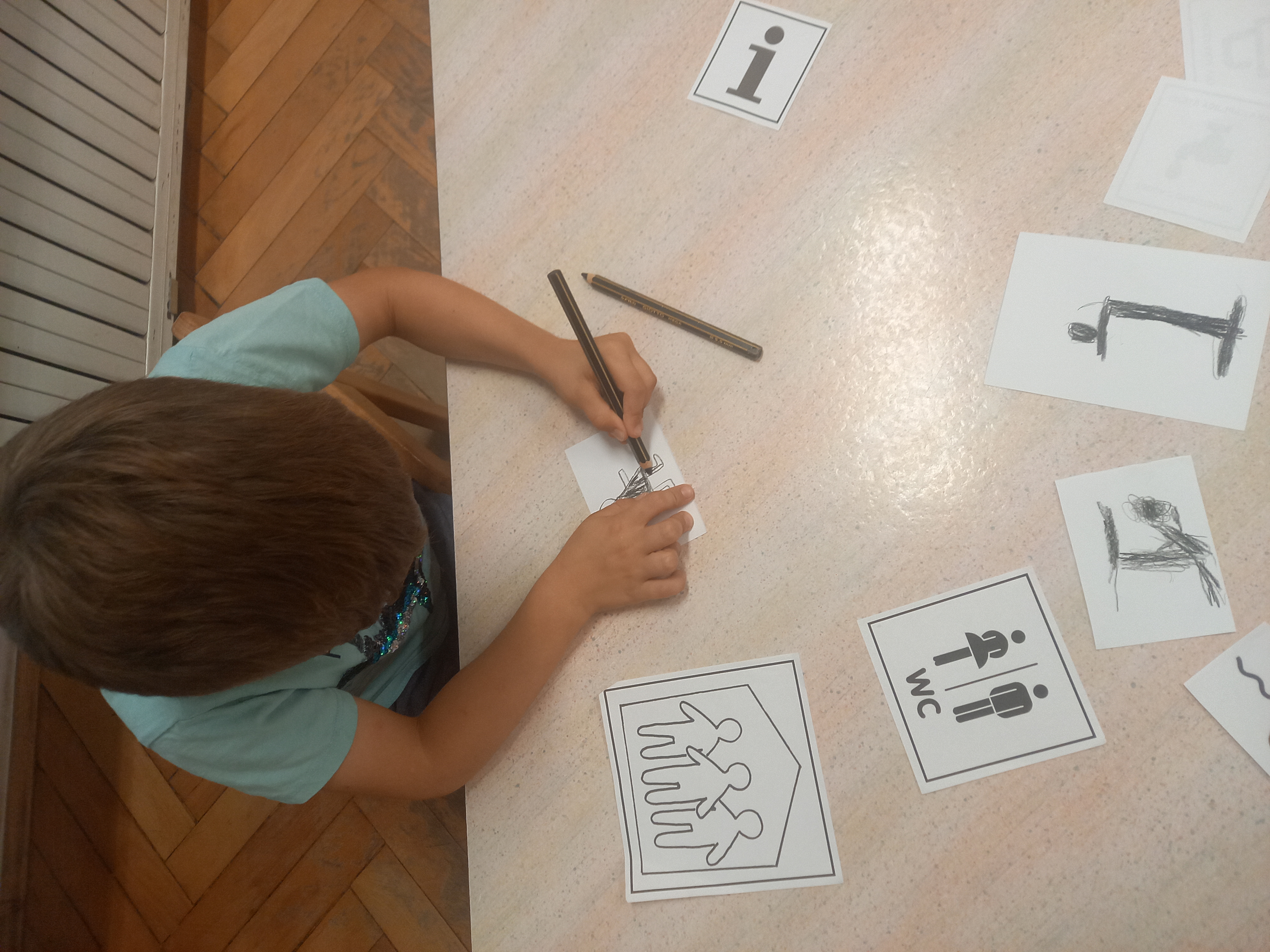 Children can draw their own pictograms or signs for play in the kindergarten.