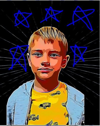 L. P.: "I like putting stickers on photos and drawing on them because it's fun. I put a lion on myself because my dad calls me that, and that feels nice."